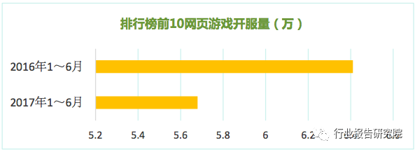2017 年 1-6 月,排行榜前 10 网页游戏开服量约 56800 组,同比减少约 7300 组。