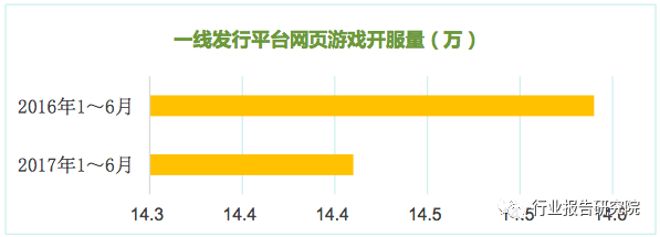 2017 年 1-6 月,一线发行平台网页游戏开服量约为 144100组,同比减少约 1300 组。