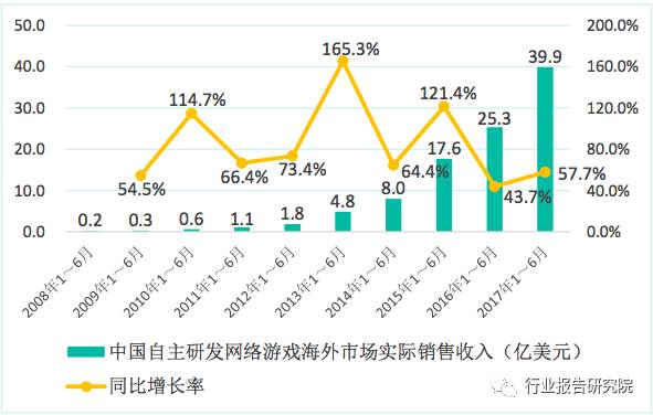 2017 年 1-6 月,中国自主研发网络游戏海外市场实际销售 收入为 39.9 亿美元,同比增长 57.7%,中国自主研发移动游戏 在海外市场拓展加速成为主要增长动力。