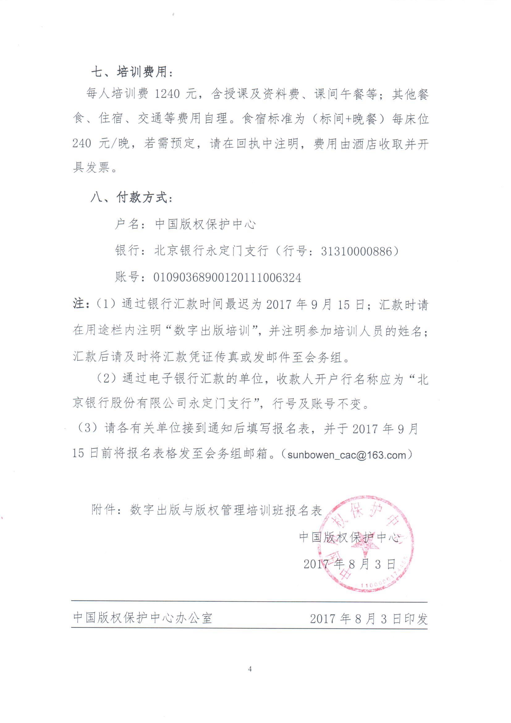 注:(1)通过银行汇款时间最迟为2017年9月15日;汇款时请在用途栏内注明“数字出版培训”,并注明参加培训人员的姓名;汇款后请及时将汇款凭证传真或发邮件至会务组。