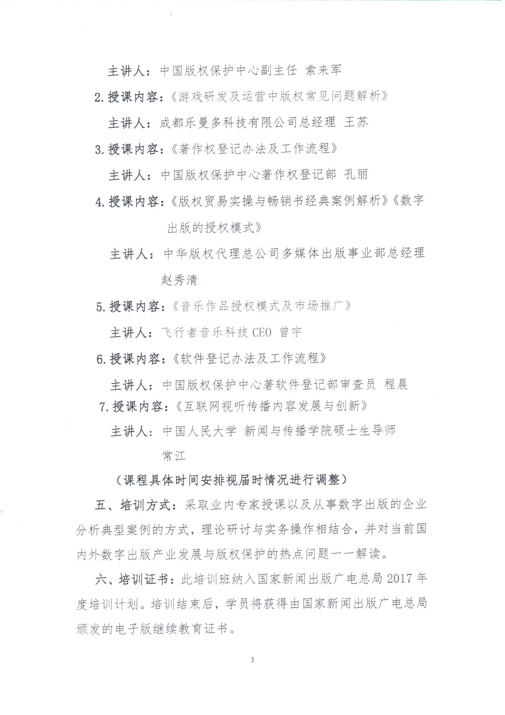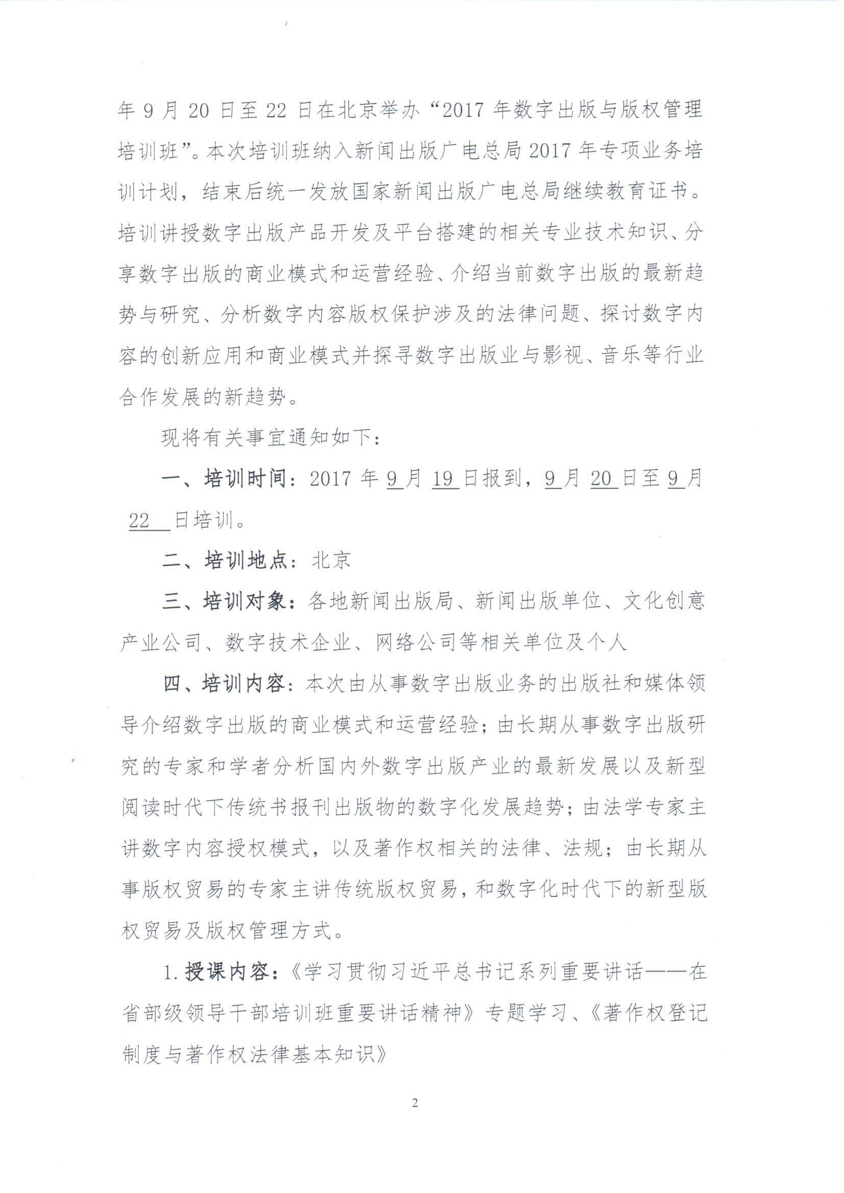 三、培训对象:各地新闻出版局、新闻出版单位、文化创意产业公司、数字技术企业、网络公司等相关单位及个人